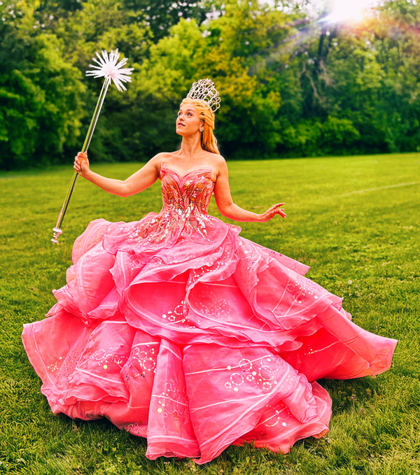 Let us rejoice! Our Good Witch is here and it truly is so lovely to see here. She wears a gown that was designed to replicate the beauty and intricacy of that seen in both film and theme parks. She wears a delicately handcrafted crown and carries her signature bubble wand, also crafted by hand with love.
